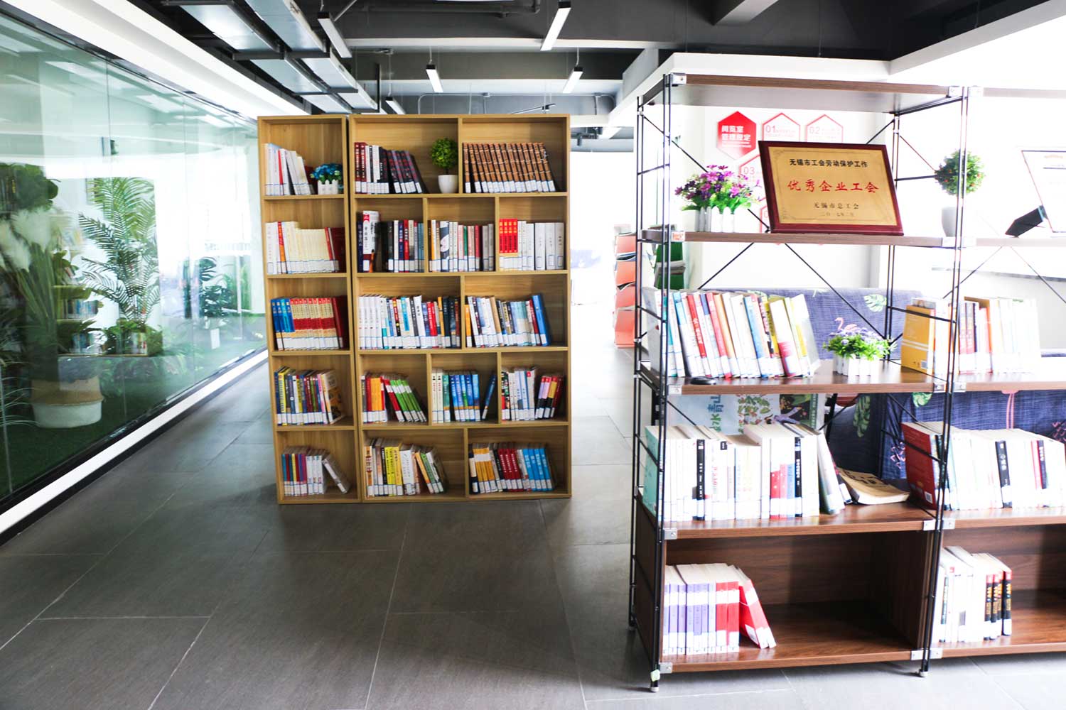 “天上書閣”內(nèi)還裝點了花卉盆栽,營造了安靜、整潔、美觀、舒適的讀書環(huán)境。書屋中的圖書涵蓋黨政歷史、人物傳記、世界文學(xué)名著、中國文學(xué)名著、法律、社科文學(xué)、現(xiàn)代文學(xué)、國家地理等,為廣大職工追求新知識、學(xué)習(xí)新本領(lǐng)的需求和愿望,每年上新圖書100余冊,并在公司內(nèi)網(wǎng)不定期公布“新書看一看”,為職工網(wǎng)上快捷查閱和學(xué)習(xí)交流提供了便利條件。